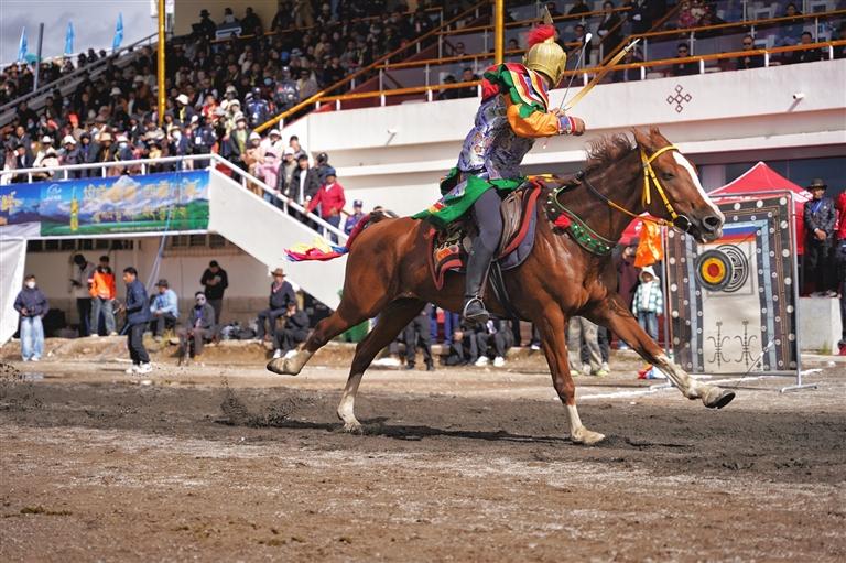 整場活動以《高原啼聲慶輝煌》《金鞍印跡照征程》《同心筑夢映華章》三大篇章依次展開,節(jié)目氣勢恢宏、內(nèi)容豐富多彩,深情禮贊西藏自治區(qū)成立六十周年以來牧區(qū)的變遷與發(fā)展。來自四川、青海以及西藏拉薩的六支馬術(shù)表演隊在舞臺周圍的跑道上展示了精湛的馬術(shù)技巧,為觀眾呈現(xiàn)了一場精彩絕倫的視覺盛宴。