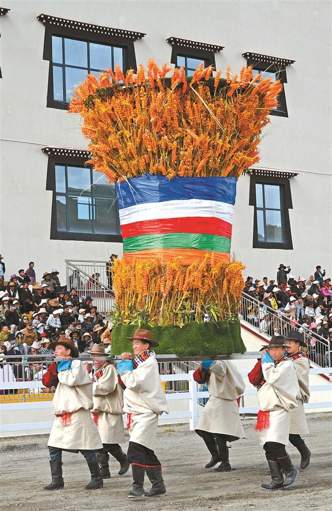 圖為寓意豐收的青稞方隊(duì)入場(chǎng)。