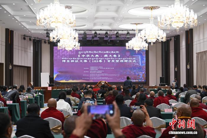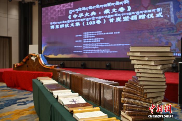 圖為《中華大典·藏文卷》之《博東班欽文集》捐贈儀式現(xiàn)場。貢嘎來松 攝