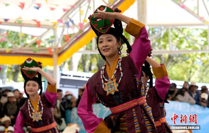 10月19日,“格?;ū崩_市第六屆縣(區(qū))藝術(shù)團(tuán)文藝調(diào)演頒獎(jiǎng)活動(dòng)在布達(dá)拉宮腳下的宗角祿康公園舉行。現(xiàn)場,拉薩市各縣(區(qū))藝術(shù)團(tuán)帶來精彩節(jié)目。圖為文藝調(diào)演頒獎(jiǎng)活動(dòng)上的文藝表演。中新社記者 李林 攝