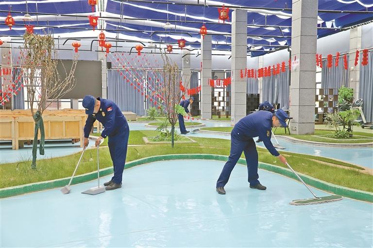 圖為消防員在認(rèn)真打掃衛(wèi)生。記者 彭琦 攝