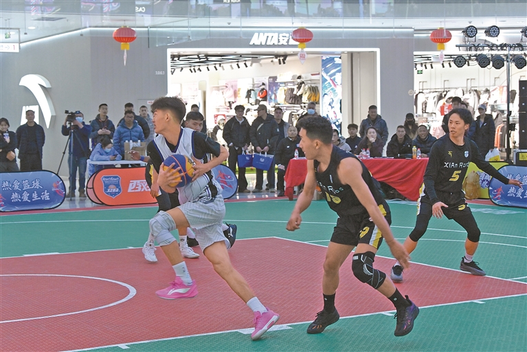 圖為街頭三人籃球聯(lián)賽現(xiàn)場(chǎng)。記者 王敏 攝