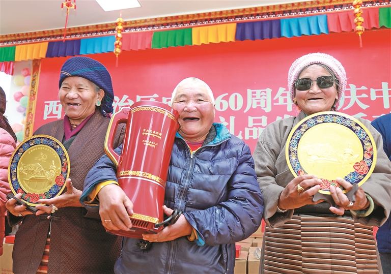 近日,墨竹工卡縣在縣集中供養(yǎng)中心舉行西藏自治區(qū)成立60周年紀念品發(fā)放活動。相關部門工作人員為老人們發(fā)放中央代表團贈送的全自動酥油茶壺、工藝擺件等紀念品,并現(xiàn)場宣講黨的二十屆四中全會及自治區(qū)黨委十屆九次全會精神。老人們收到禮品后備感溫暖,紛紛表達對祖國繁榮昌盛的美好祝愿。