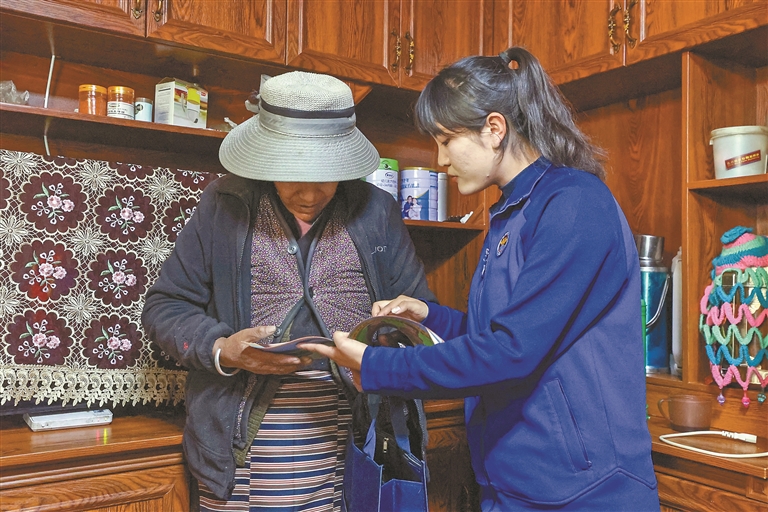 圖為崗拉美朵女子雙語志愿服務(wù)隊開展“敲門入戶”行動。記者 王香香 見習(xí)記者 土旦仁青 攝