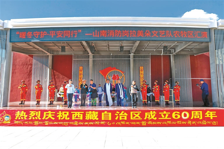 近日,山南市消防救援支隊崗拉美朵文藝隊“農(nóng)牧區(qū)暖冬消防行”巡演首演,在乃東區(qū)多頗章鄉(xiāng)嘎東團(tuán)結(jié)新村正式拉開帷幕。