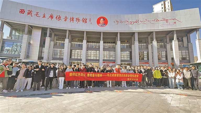 拉薩師范學(xué)院學(xué)生在西藏毛主席像章博物館門口合影。記者 劉斯宇 攝