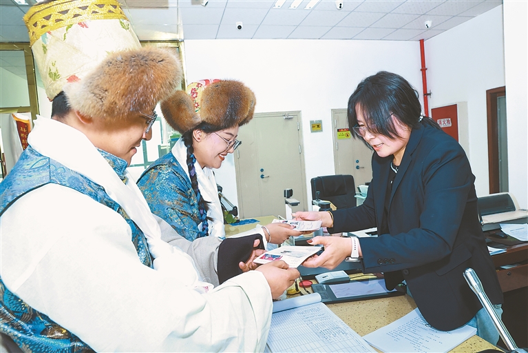 圖為墨竹工卡縣政務(wù)服務(wù)大廳內(nèi),工作人員在為市民辦理結(jié)婚證。記者 唐斌 本報通訊員 洛克 攝