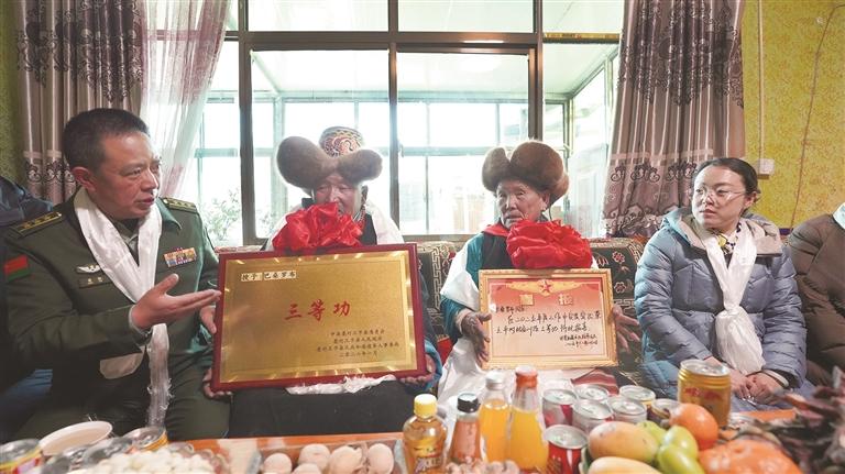 3月6日,拉薩市墨竹工卡縣隆重舉行立功喜報(bào)登門送達(dá)儀式。墨竹工卡縣政府黨組成員、副縣長任彥芳,縣人武部部長梁銳,各鄉(xiāng)鎮(zhèn)黨委政府、縣民政和退役軍人事務(wù)局主要負(fù)責(zé)人組成送喜報(bào)隊(duì)伍,敲鑼打鼓為巴桑羅布、玉仲多吉堅(jiān)才2名榮立個(gè)人三等功的現(xiàn)役軍人家屬送上喜報(bào)、慰問金與光榮綬帶,把黨和政府的尊崇與關(guān)懷送到軍屬家門口、心坎上。