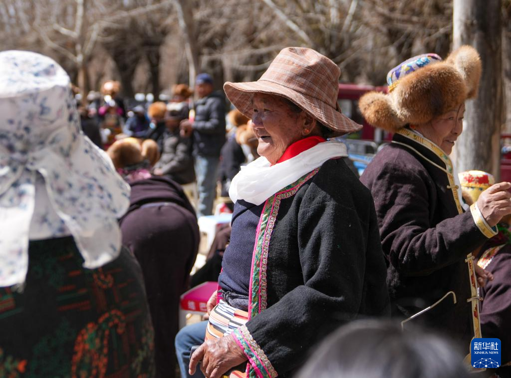 卓瑪吾珠(左)和鄉(xiāng)親們在慶祝春耕儀式上(3月16日攝)。新華社記者 晉美多吉 攝