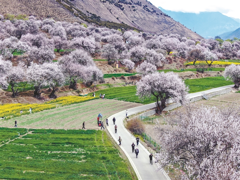 漫山桃花常開,生態(tài)之美、百姓之富、產(chǎn)業(yè)之興,在春風(fēng)里、在繁花中,徐徐鋪展成雪域江南獨(dú)有的錦繡長卷。