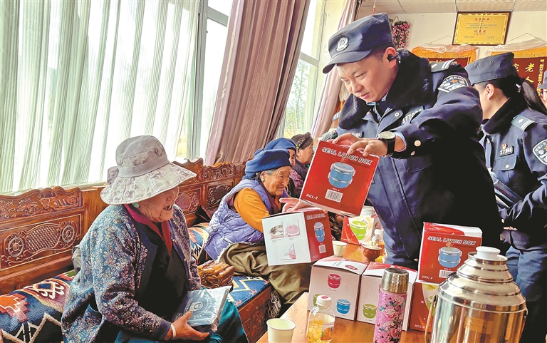 墨竹工卡縣公安局治安大隊民警向老人宣傳網(wǎng)絡反詐、居家安全等常識。記者 格桑倫珠 攝