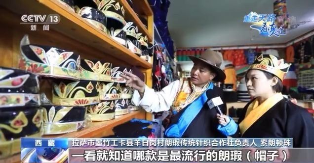拉薩市墨竹工卡縣羊日崗村朗瑕傳統(tǒng)針織合作社負(fù)責(zé)人 索朗頓珠:我們這的姑娘小伙兒,一看就知道哪款是最流行的朗瑕(帽子),這是個去年款,這個是今年的款。你看,這兩個是牦牛角。朗瑕(帽子)很有我們藏族特色,同時也在與時俱進(jìn),看這些做工、花紋越來越精致了。