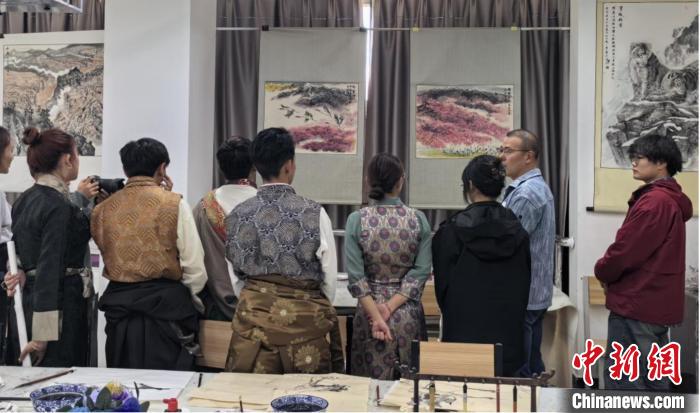 西藏大學藝術學院師生在欣賞美術作品。西藏大學藝術學院供圖