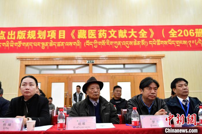 圖為 《藏醫(yī)藥文獻大全》首發(fā)暨贈書儀式現(xiàn)場。貢嘎來松 攝