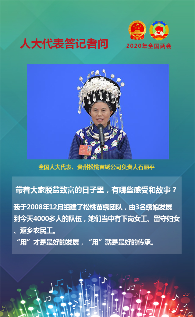 全國人大代表、貴州松桃苗繡公司負責(zé)人石麗平