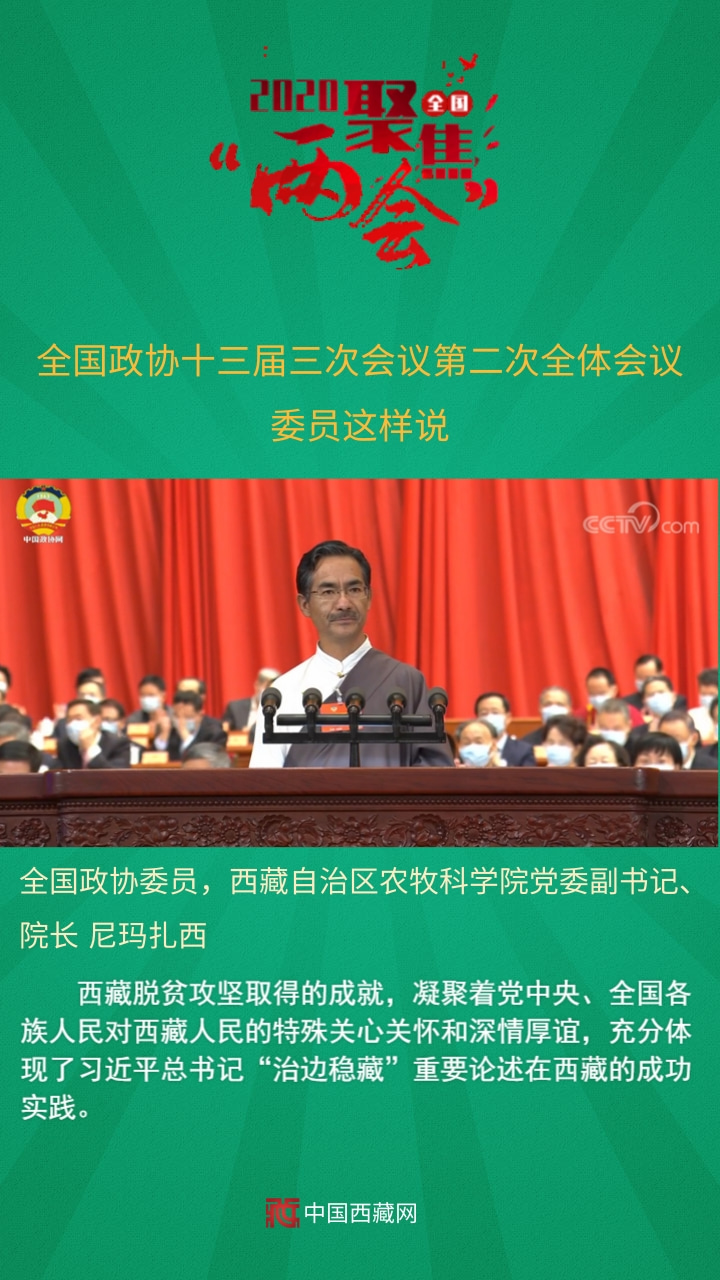 全國(guó)政協(xié)委員,西藏自治區(qū)農(nóng)牧科學(xué)院黨委副書(shū)記、院長(zhǎng)尼瑪扎西發(fā)言說(shuō),西藏脫貧攻堅(jiān)取得的成就,凝聚著黨中央、全國(guó)各族人民對(duì)西藏人民的特殊關(guān)心關(guān)懷和深情厚誼,充分體現(xiàn)了習(xí)近平總書(shū)記“治邊穩(wěn)藏”重要論述在西藏的成功實(shí)踐。