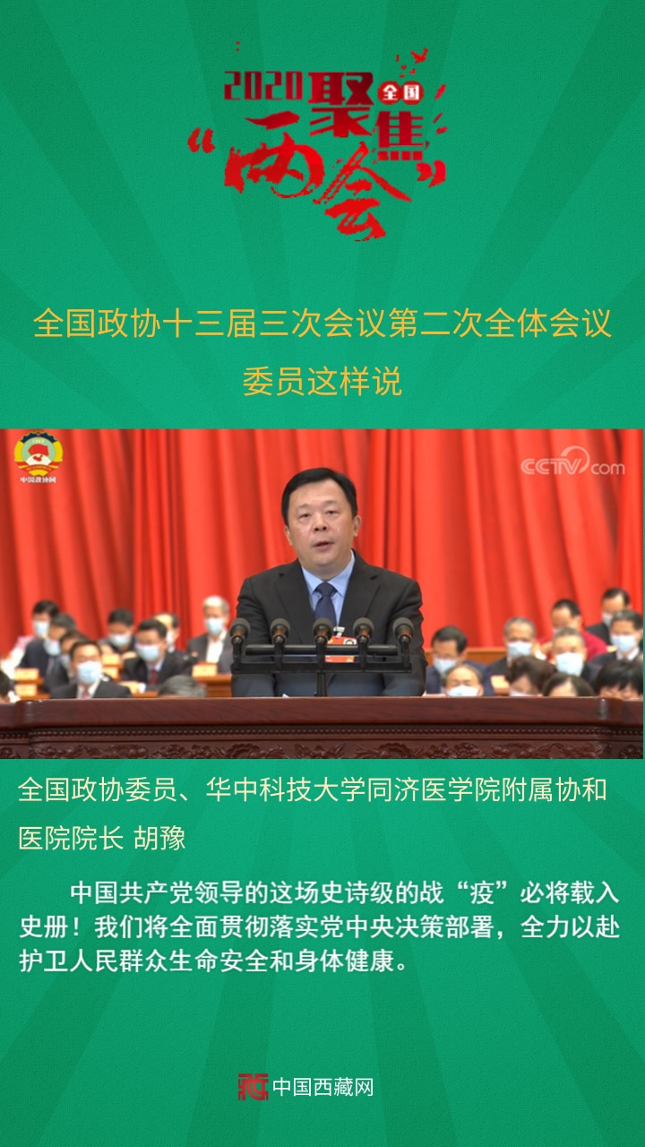 全國(guó)政協(xié)委員、華中科技大學(xué)同濟(jì)醫(yī)學(xué)院附屬協(xié)和醫(yī)院院長(zhǎng)胡豫發(fā)言說(shuō),中國(guó)共產(chǎn)黨領(lǐng)導(dǎo)的這場(chǎng)史詩(shī)級(jí)的戰(zhàn)“疫”必將載入史冊(cè)!我們將全面貫徹落實(shí)黨中央決策部署,全力以赴護(hù)衛(wèi)人民群眾生命安全和身體健康。