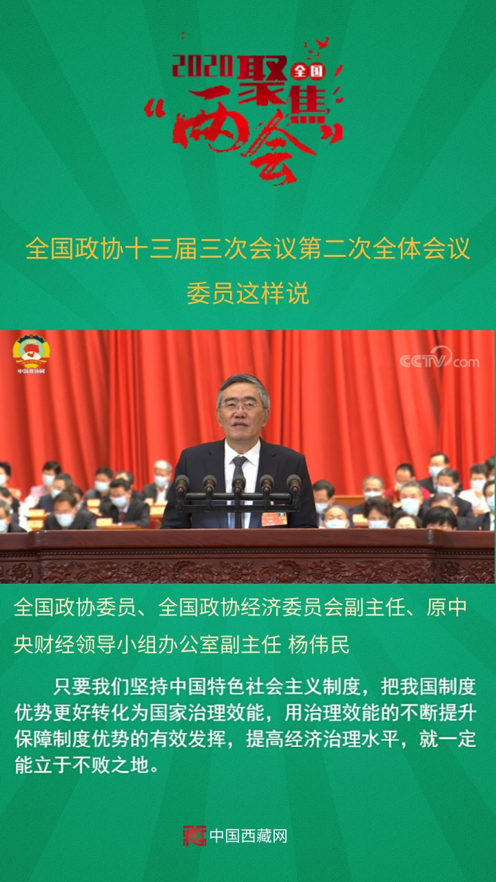 中國(guó)西藏網(wǎng)訊 全國(guó)政協(xié)十三屆三次會(huì)議第二次全體會(huì)議5月24日上午在人民大會(huì)堂舉行。12名委員分別圍繞“脫貧攻堅(jiān)”“武漢戰(zhàn)‘疫’”“經(jīng)濟(jì)建設(shè)”“六穩(wěn)六保”“基層減負(fù)”等主題作大會(huì)發(fā)言。中共中央政治局委員、國(guó)務(wù)院副總理孫春蘭,中共中央政治局委員、中央書(shū)記處書(shū)記、中央宣傳部部長(zhǎng)黃坤明以及中共中央、國(guó)務(wù)院有關(guān)部門(mén)的負(fù)責(zé)同志,應(yīng)邀出席會(huì)議,聽(tīng)取委員們的意見(jiàn)建議。
