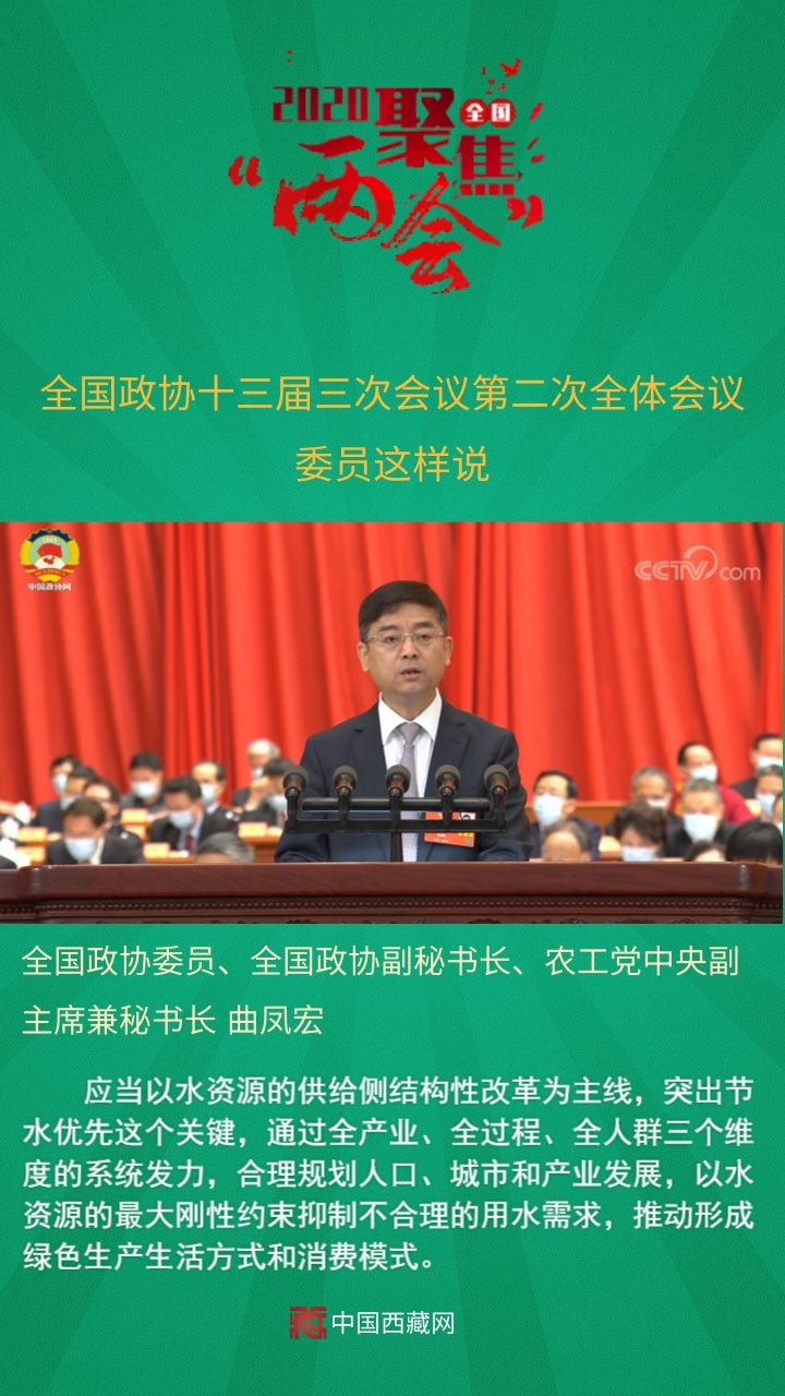 全國(guó)政協(xié)委員、全國(guó)政協(xié)副秘書(shū)長(zhǎng)、農(nóng)工黨中央副主席兼秘書(shū)長(zhǎng)曲鳳宏發(fā)言說(shuō),應(yīng)當(dāng)以水資源的供給側(cè)結(jié)構(gòu)性改革為主線(xiàn),突出節(jié)水優(yōu)先這個(gè)關(guān)鍵,通過(guò)全產(chǎn)業(yè)、全過(guò)程、全人群三個(gè)維度的系統(tǒng)發(fā)力,合理規(guī)劃人口、城市和產(chǎn)業(yè)發(fā)展,以水資源的最大剛性約束抑制不合理的用水需求,推動(dòng)形成綠色生產(chǎn)生活方式和消費(fèi)模式。