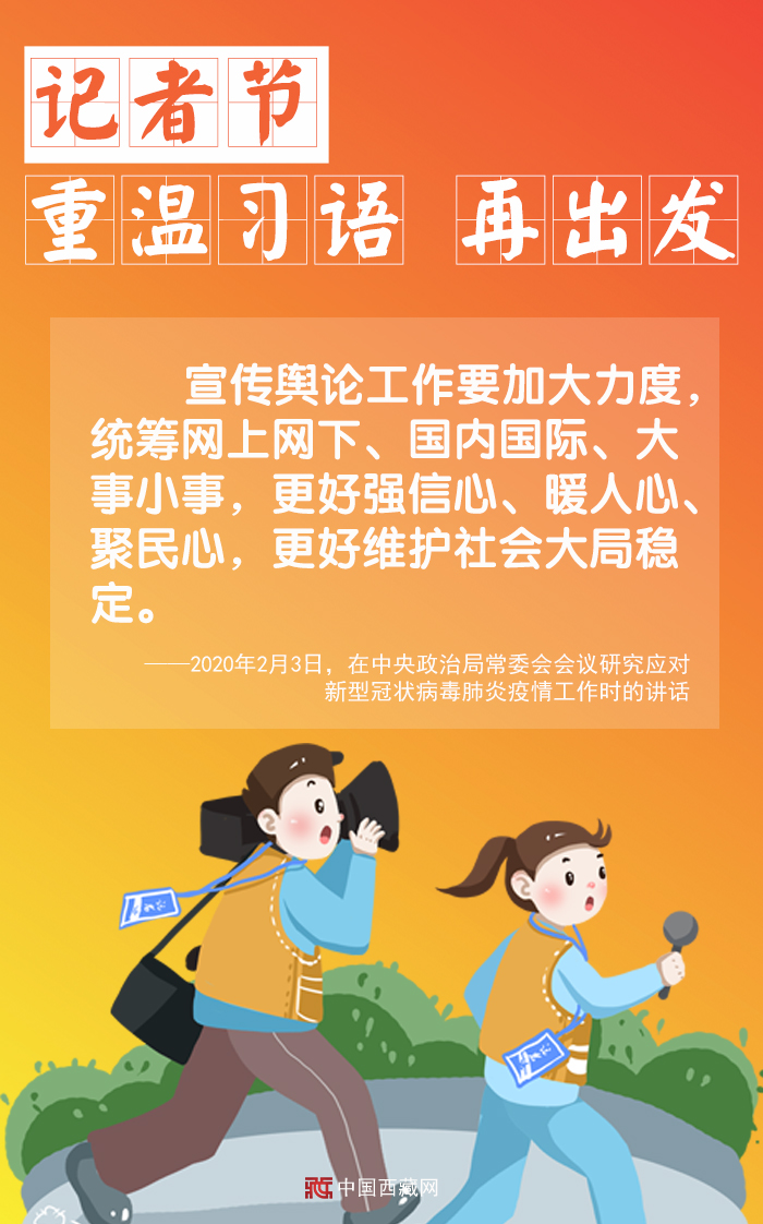 此刻,節(jié)日的主角們或在新聞現(xiàn)場忙碌著,或在抗疫一線記錄著,或在奮筆疾書書寫著……一直以來,習(xí)近平總書記十分關(guān)心新聞工作者,并提出了許多殷切希望。在這個特別的日子里,讓我們重溫總書記囑托,強(qiáng)化責(zé)任擔(dān)當(dāng)再出發(fā)。(中國西藏網(wǎng) 編輯/周晶 制作/許娜)