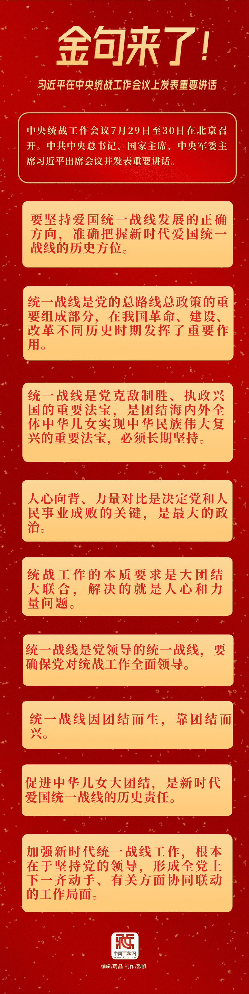 金句來了!習(xí)近平在中央統(tǒng)戰(zhàn)工作會議上發(fā)表重要講話