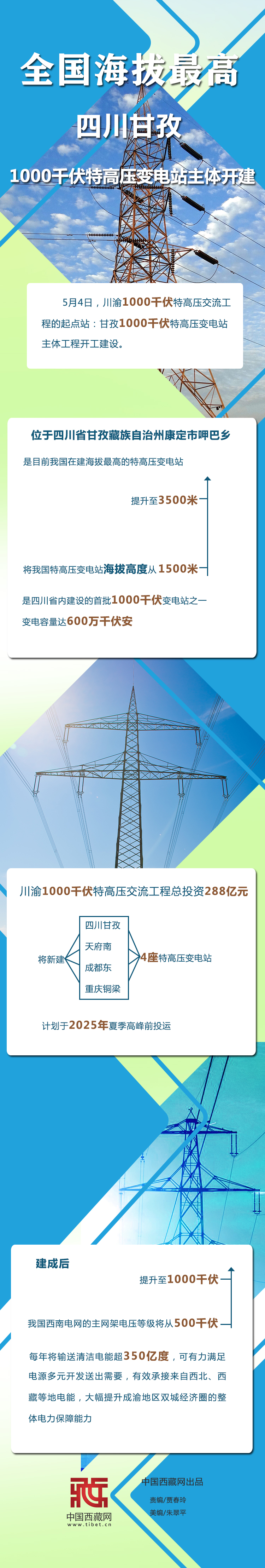 圖解|全國(guó)海拔最高 四川甘孜1000千伏特高壓變電站主體開建