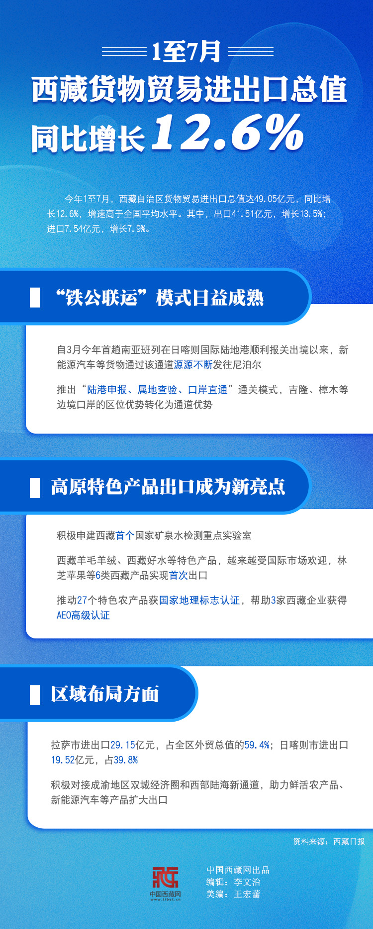 海報(bào)|1至7月西藏貨物貿(mào)易進(jìn)出口總值同比增長(zhǎng)12.6%