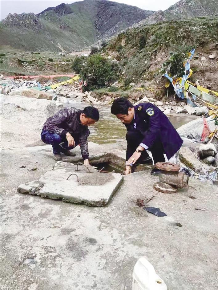 工作人員對(duì)蔡公堂鄉(xiāng)斜村水源進(jìn)行檢查。圖由采訪對(duì)象提供