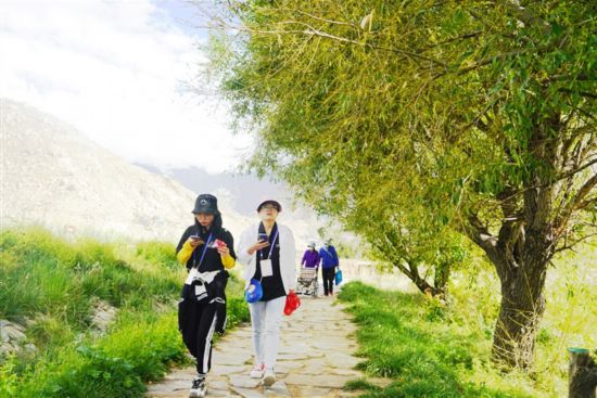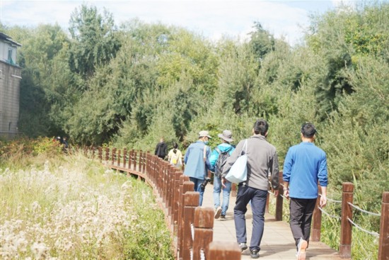 9月初,濕地里的花草樹木從夏天的翠綠到初秋的泛黃,成為了拉魯濕地另一番美景?!∪藗?cè)诓叫衅溟g,呼吸著充足的氧氣,情緒高漲,邁開輕快而有力的步伐,沿著拉魯濕地步道健步前行,時(shí)而駐足觀望沿途美景,時(shí)而聚集一方合影留念,不僅鍛煉了身體,又領(lǐng)略了自然風(fēng)光,也陶冶了情操。