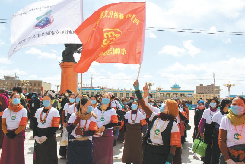 河南縣巾幗志愿服務(wù)隊(duì)開展環(huán)境整治現(xiàn)場(chǎng)。 攝影:公保安加