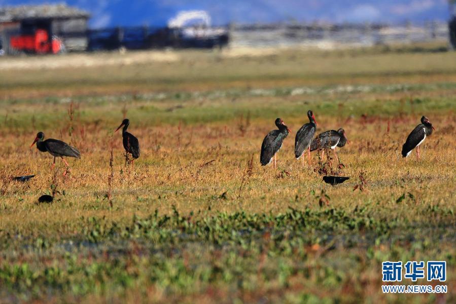 云南納帕海國際重要濕地成黑鸛國內(nèi)最大越冬停歇地