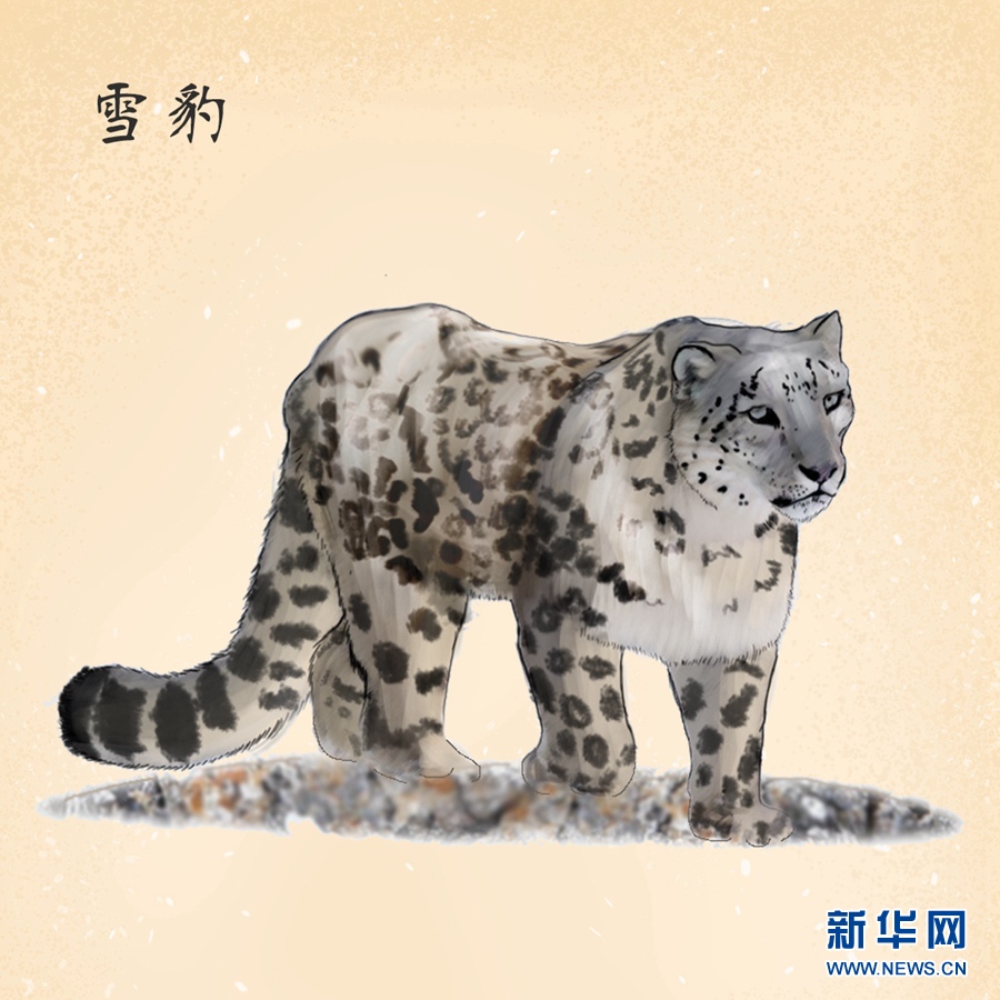 雪豹:國家一級保護(hù)動物。被稱為“雪山之王”,一般生活在海拔3000米以上的山里,經(jīng)常在雪線附近和雪地間活動。