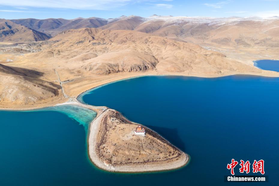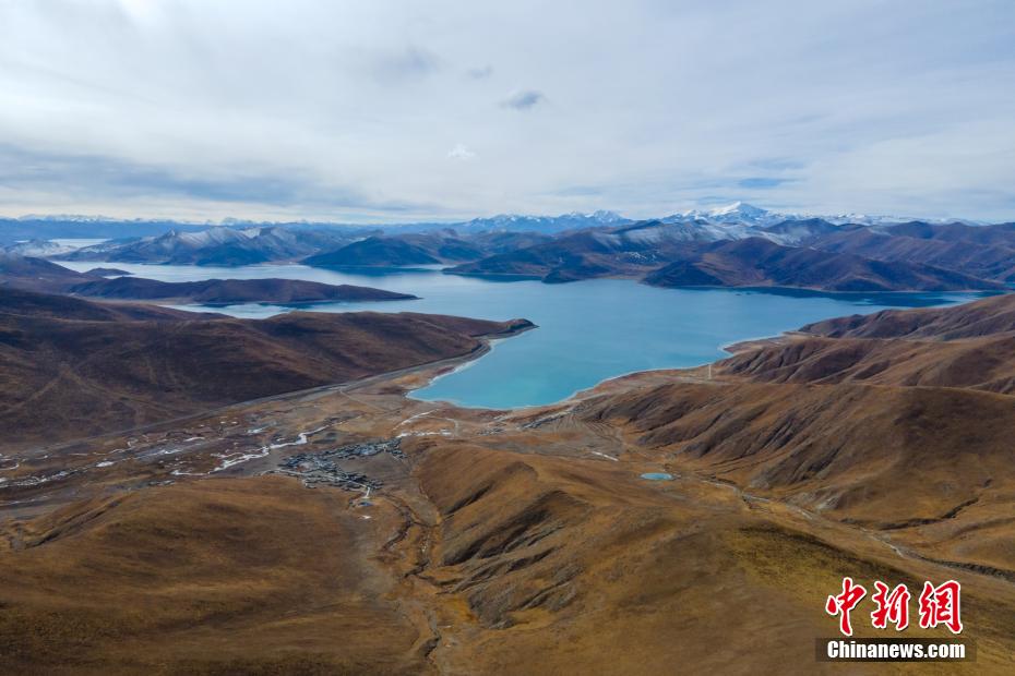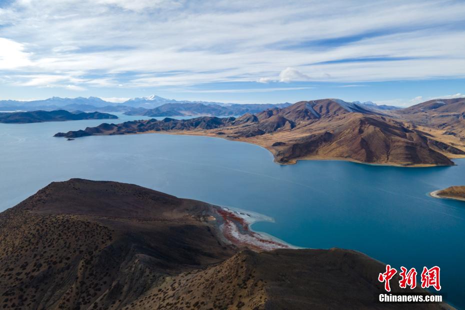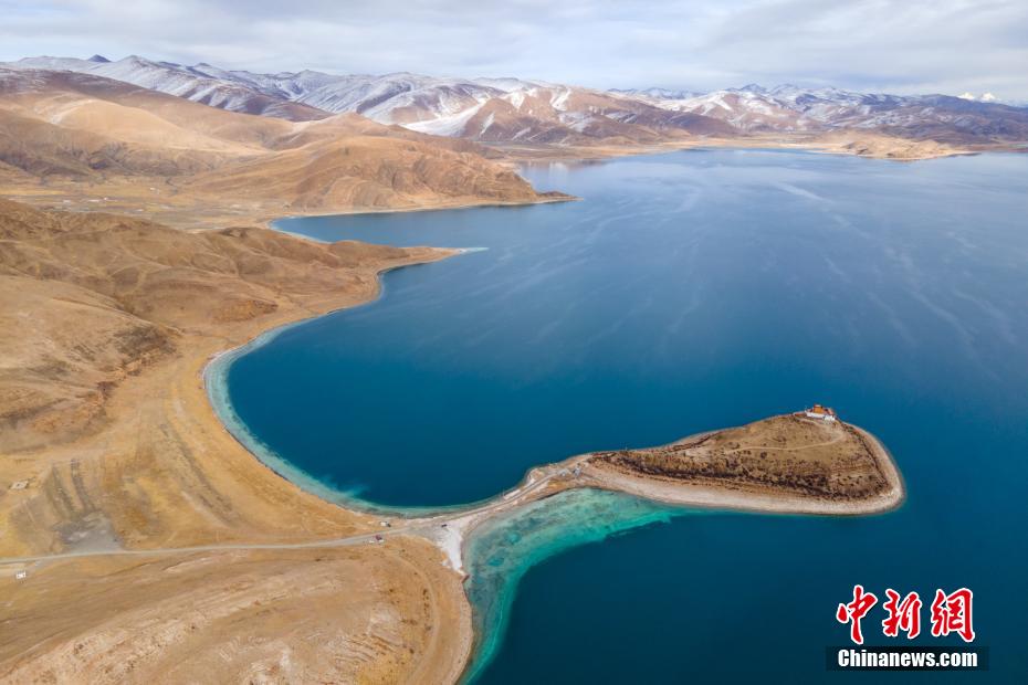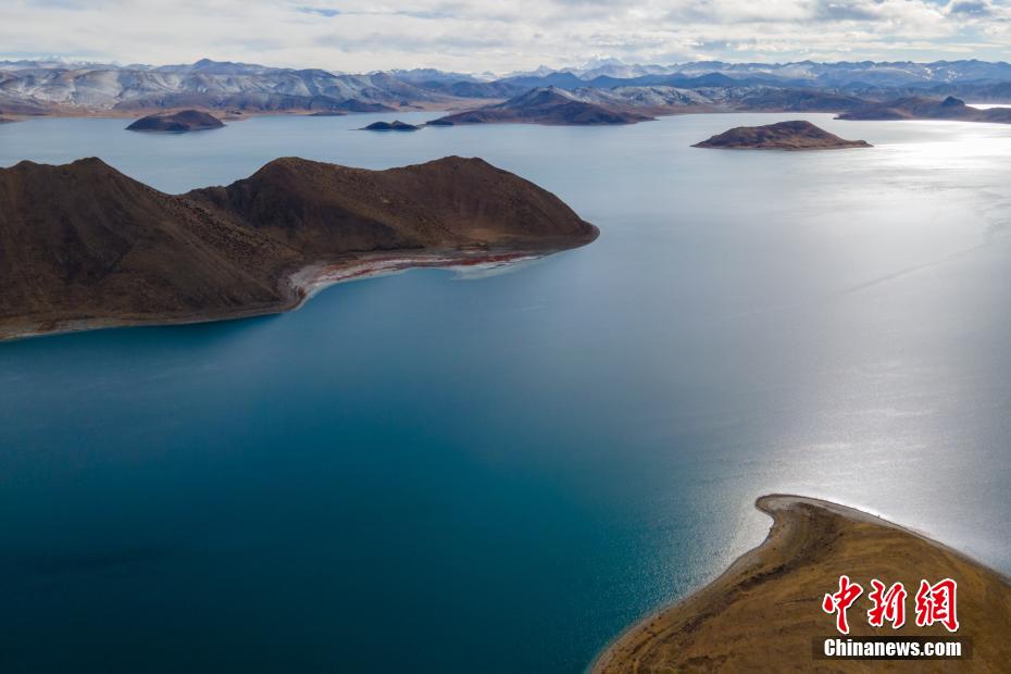 12月28日,羊卓雍錯(cuò)湖岸風(fēng)光。羊卓雍錯(cuò)藏語意為“碧玉湖”,與納木錯(cuò)、瑪旁雍錯(cuò)并稱西藏三大“圣湖”。羊卓雍錯(cuò)湖面海拔4441米,東西長(zhǎng)130公里,南北寬70公里,湖岸線總長(zhǎng)250多公里。28日,中新網(wǎng)記者自駕前往羊卓雍錯(cuò),翻過山口,到達(dá)湖岸東北面的日托寺,沿途盡是冬日高原湖光山色之美,無人機(jī)航拍鏡頭下,遠(yuǎn)處雪山、冰川巍峨屹立,堪稱絕美。 江飛波 攝
