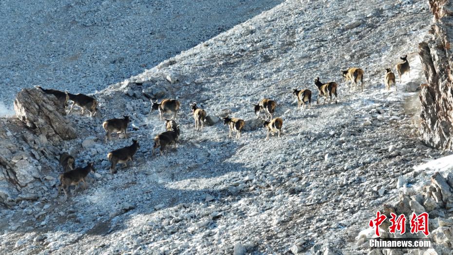 國(guó)家一級(jí)保護(hù)動(dòng)物白唇鹿“成群結(jié)隊(duì)”奔跑在祁連山