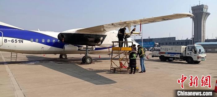 圖為國家增雨飛機(jī)新舟60(B-651N)在洛陽機(jī)場開展機(jī)載設(shè)備維護(hù)及任務(wù)系統(tǒng)升級工作。 甘肅省氣象局供圖