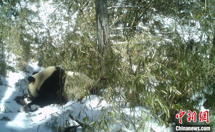 野生大熊貓雪中里喝水 蜂桶寨保護區(qū) 供圖