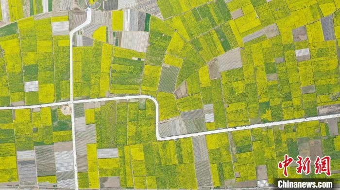 2022年3月下旬,甘肅隴南市武都區(qū)油菜花盛開,“花海”交織“路網(wǎng)”,景色誘人。 李董 攝