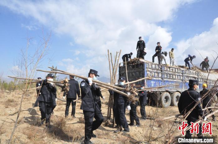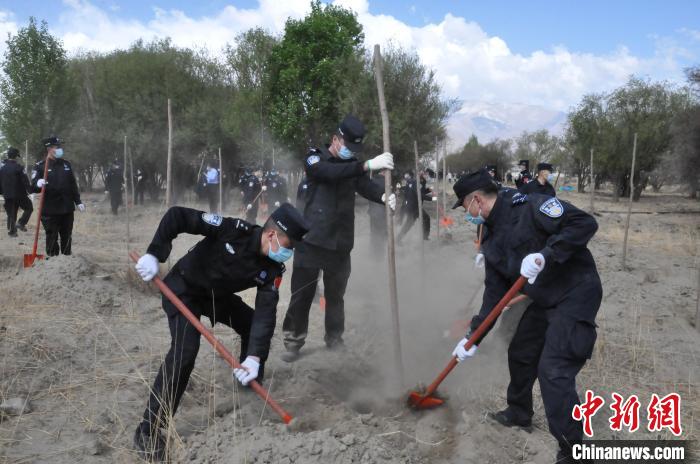 圖為西藏邊檢總站輪訓(xùn)大隊民警植樹活動現(xiàn)場 ?!∥鞑剡厵z總站輪訓(xùn)大隊供圖
