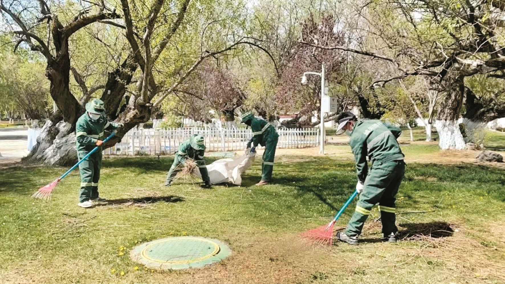 通過此次管養(yǎng)工作,共清理羅布林卡公園渣土死苗0.3噸,澆灌清水58.5噸,確保了園林植被春季正常生長。