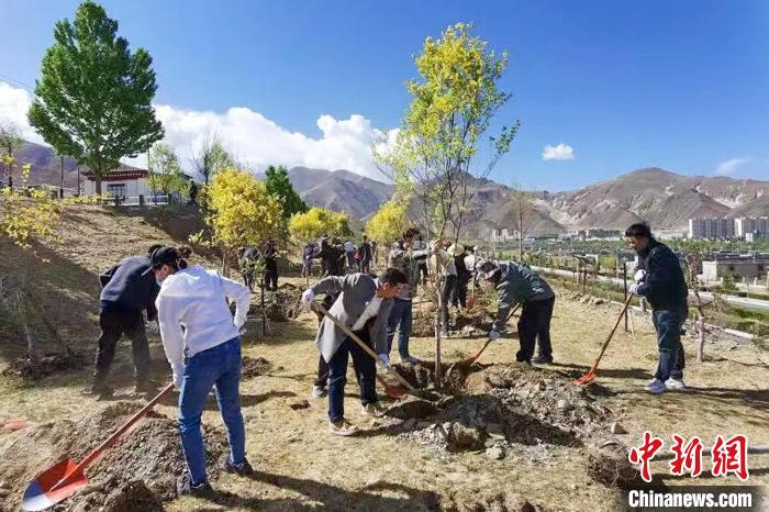 活動(dòng)組織方在拉薩柳梧新區(qū)植樹?!∥鞑乇本┥虝?huì) 供圖