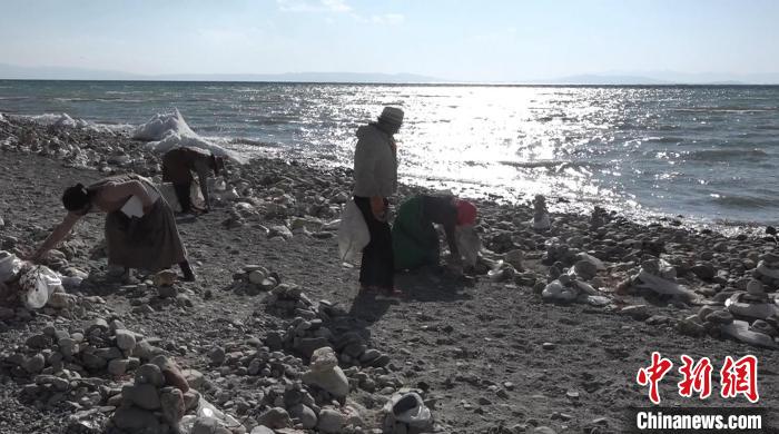 圖為牧民在瑪旁雍錯自然保護(hù)區(qū)內(nèi)撿拾垃圾?!∝暽@?攝