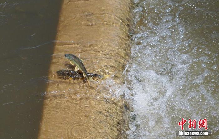 在泉吉河中,記者看到,河道內(nèi)密密麻麻的湟魚正逐級跳躍專門為其修建的洄游通道。其中,還有一些被水流沖退的湟魚重新在河道內(nèi)蓄勢待發(fā)。