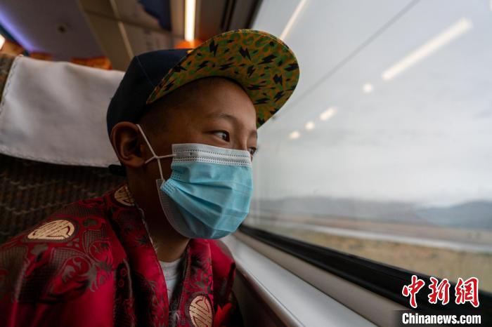 6月25日,申格卡崗村13歲牧童第第首次乘坐高原復興號,一路看著沿途不同于羌塘草原的風景?!〗w波 攝