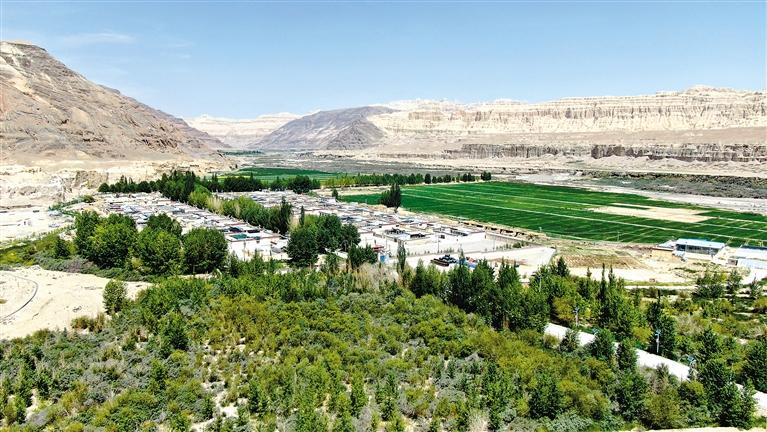 從札達(dá)縣城出發(fā),沿著河谷朝古格王國(guó)遺址下行十余公里,來(lái)到托林鎮(zhèn)波林村時(shí),忽見(jiàn)上千株二三十米高的楊樹(shù)成排矗立,護(hù)衛(wèi)著掩映其間的屋舍農(nóng)田。