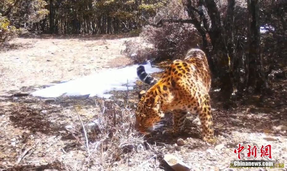 近日,木里縣博窩鄉(xiāng)野保監(jiān)測團隊,發(fā)布了一批木里縣部分野生動物的照片和視頻。該團隊自2017年成立以來,堅持在博窩鄉(xiāng)開展紅外線相機監(jiān)測工作,現(xiàn)有23名成員,在野外安裝有185臺紅外相機。圖為金錢豹。 木里縣博窩鄉(xiāng)野保監(jiān)測團隊 供圖