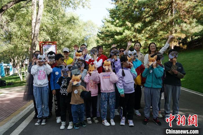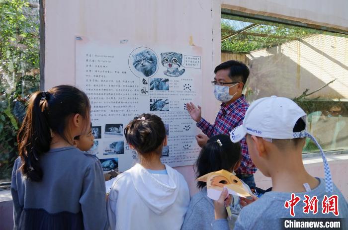 圖為青海野生動物救護繁育中心副主任向?qū)W生介紹荒漠貓?!●R銘言 攝