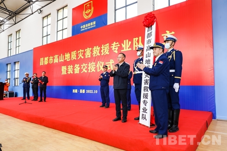 中國(guó)西藏網(wǎng)訊 10月6日,西藏自治區(qū)昌都市高山地質(zhì)災(zāi)害救援專業(yè)隊(duì)成立暨裝備交接儀式舉行,這是西藏首支高山地質(zhì)災(zāi)害救援專業(yè)隊(duì)。