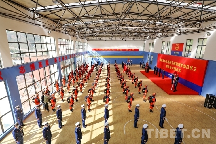 圖為昌都市高山地質(zhì)災(zāi)害救援專業(yè)隊(duì)成立暨裝備交接儀式現(xiàn)場(chǎng)