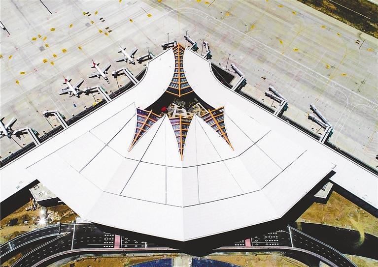 基礎設施更加完善,西藏民航航線擴展到152條,通航城市發(fā)展到68個,進出港航班日均219架次,2021年旅客吞吐量達603萬余人次。圖為西藏自治區(qū)拉薩市貢嘎國際機場T3航站樓一角。