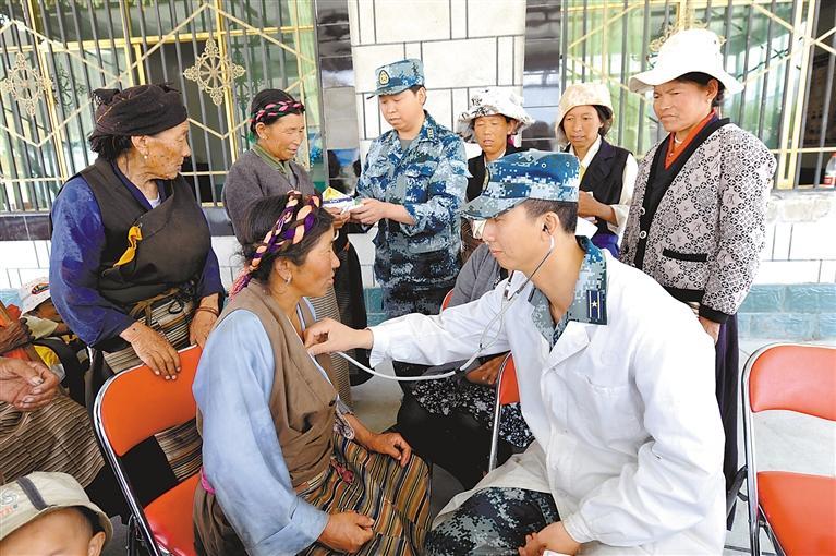 軍愛(ài)民、民擁軍,軍民團(tuán)結(jié)一家親。圖為駐藏某部官兵為當(dāng)?shù)厝罕娏x診。